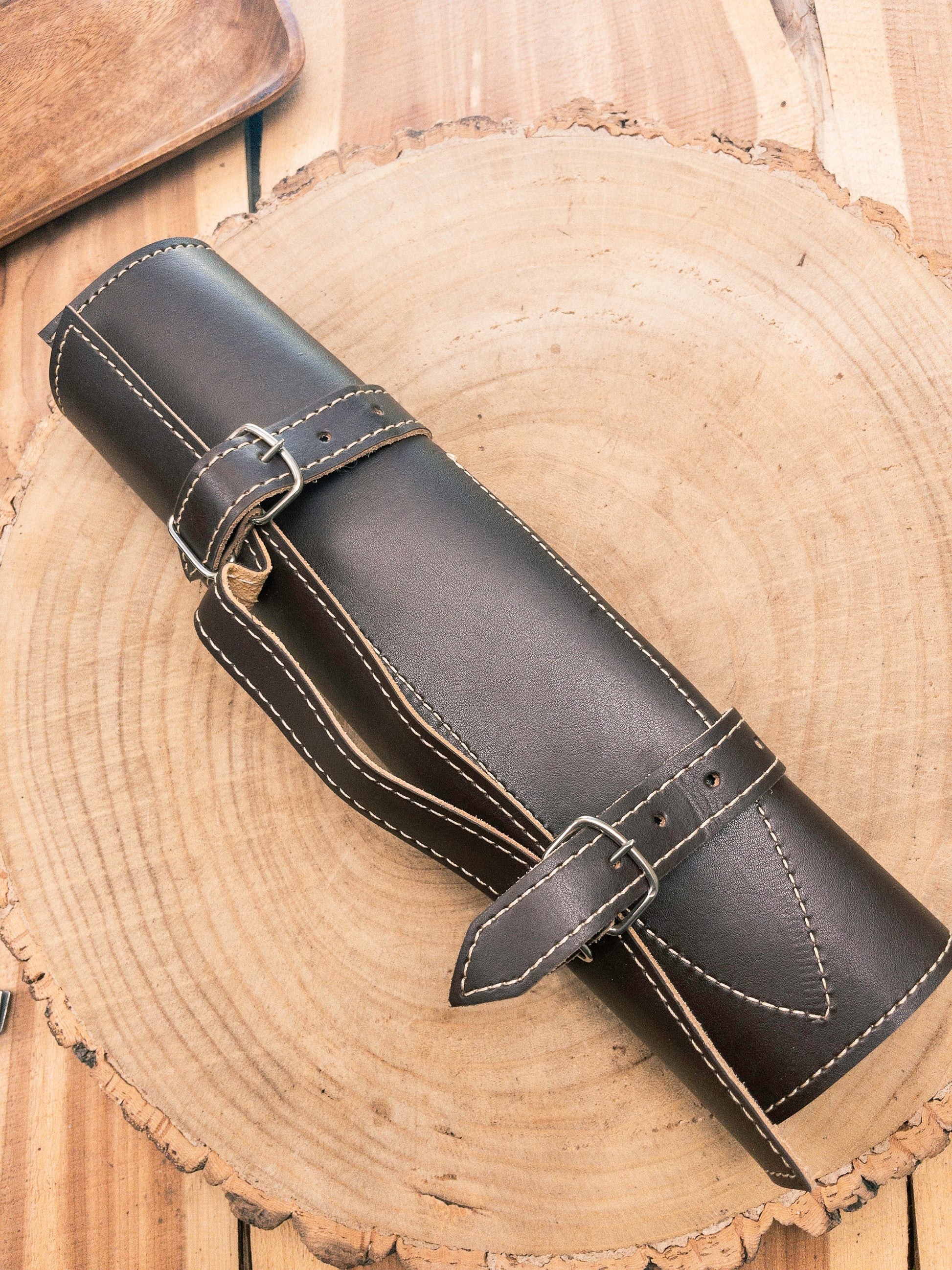 Kickoff the grilling and BBQ season right with this BBQ companion set. The Chef Set includes a meat fork and chef knife, complete with custom leather roll carrying case. Great gift idea for your favorite Barbecue Grillmaster.