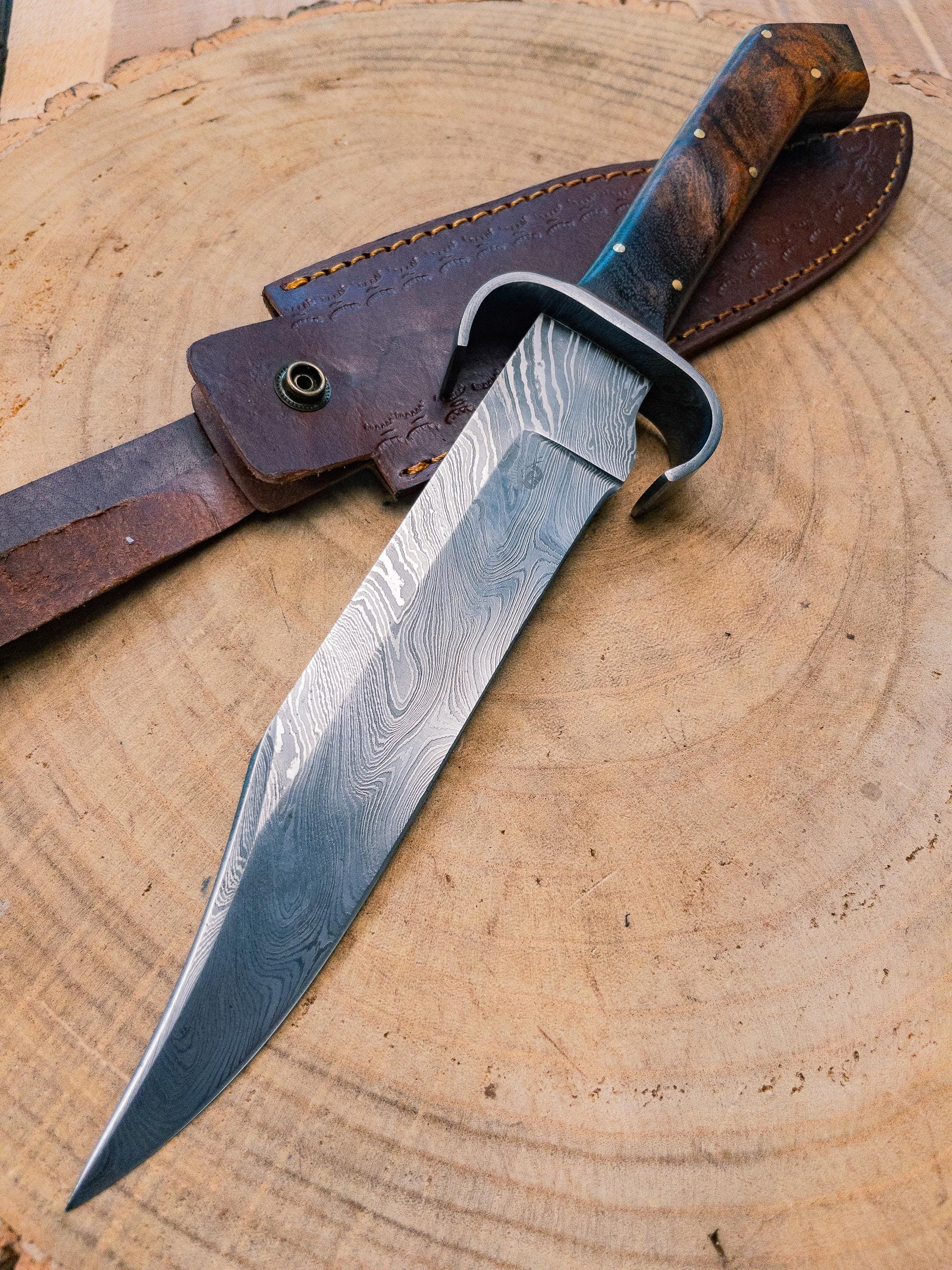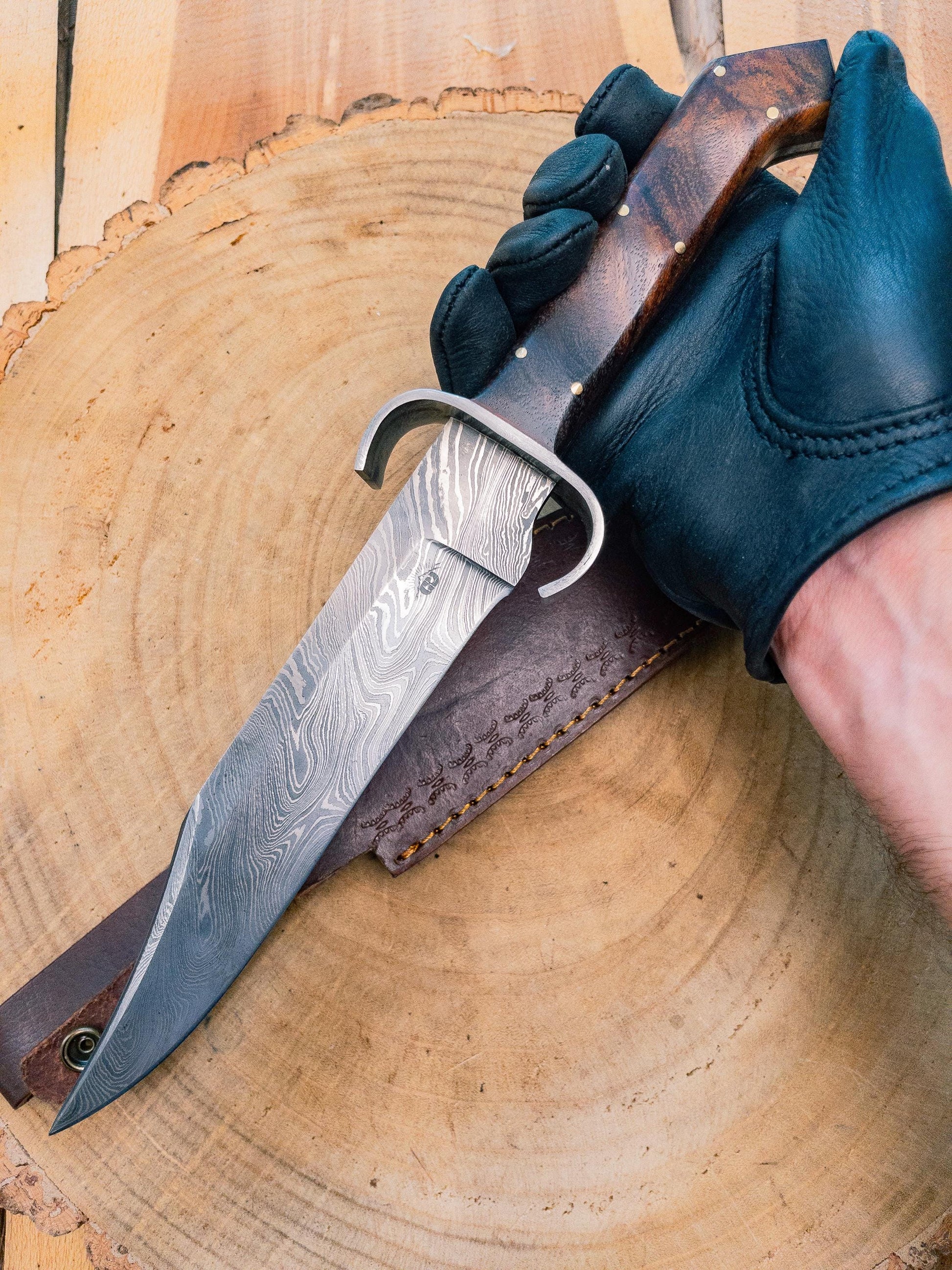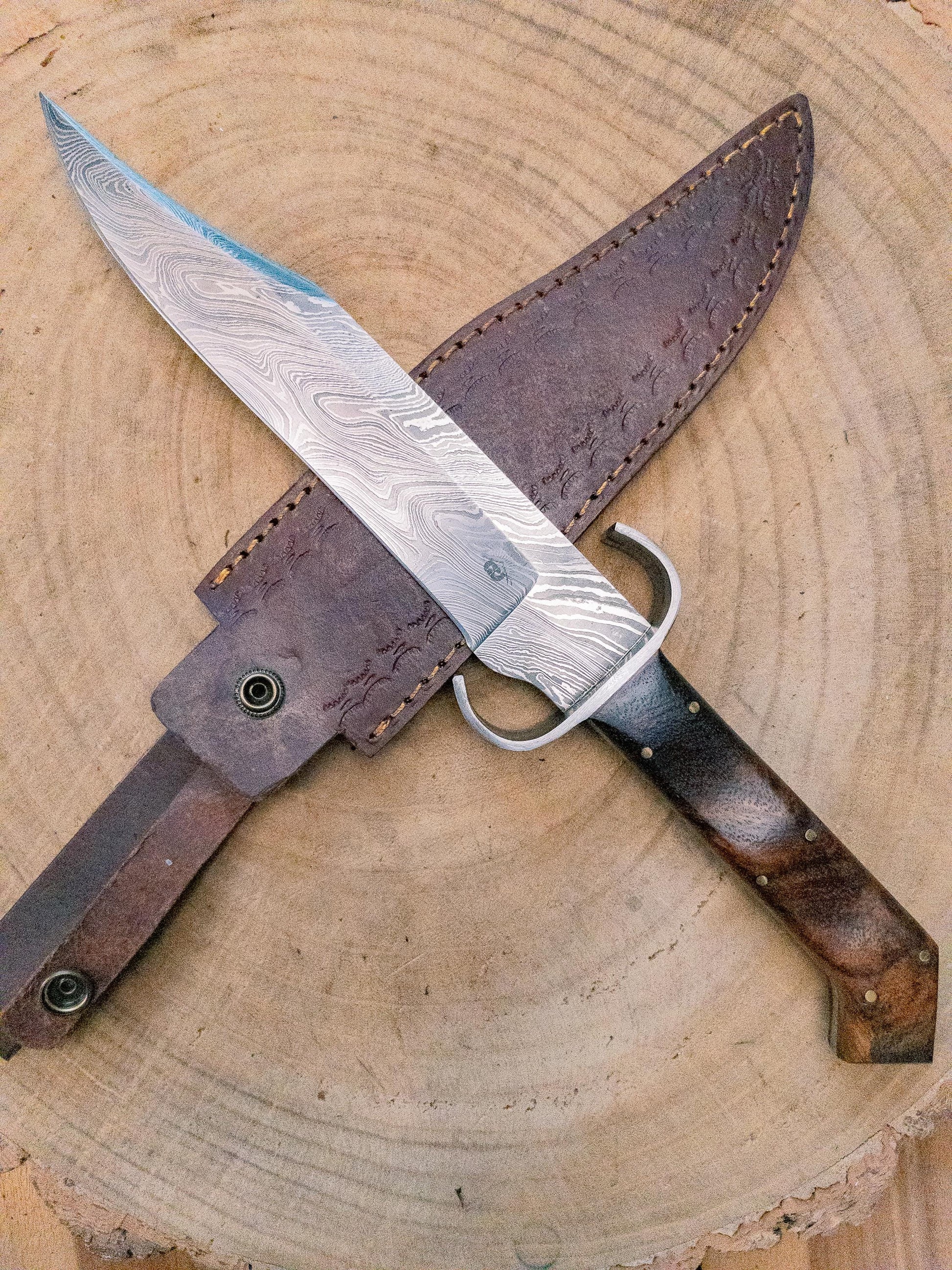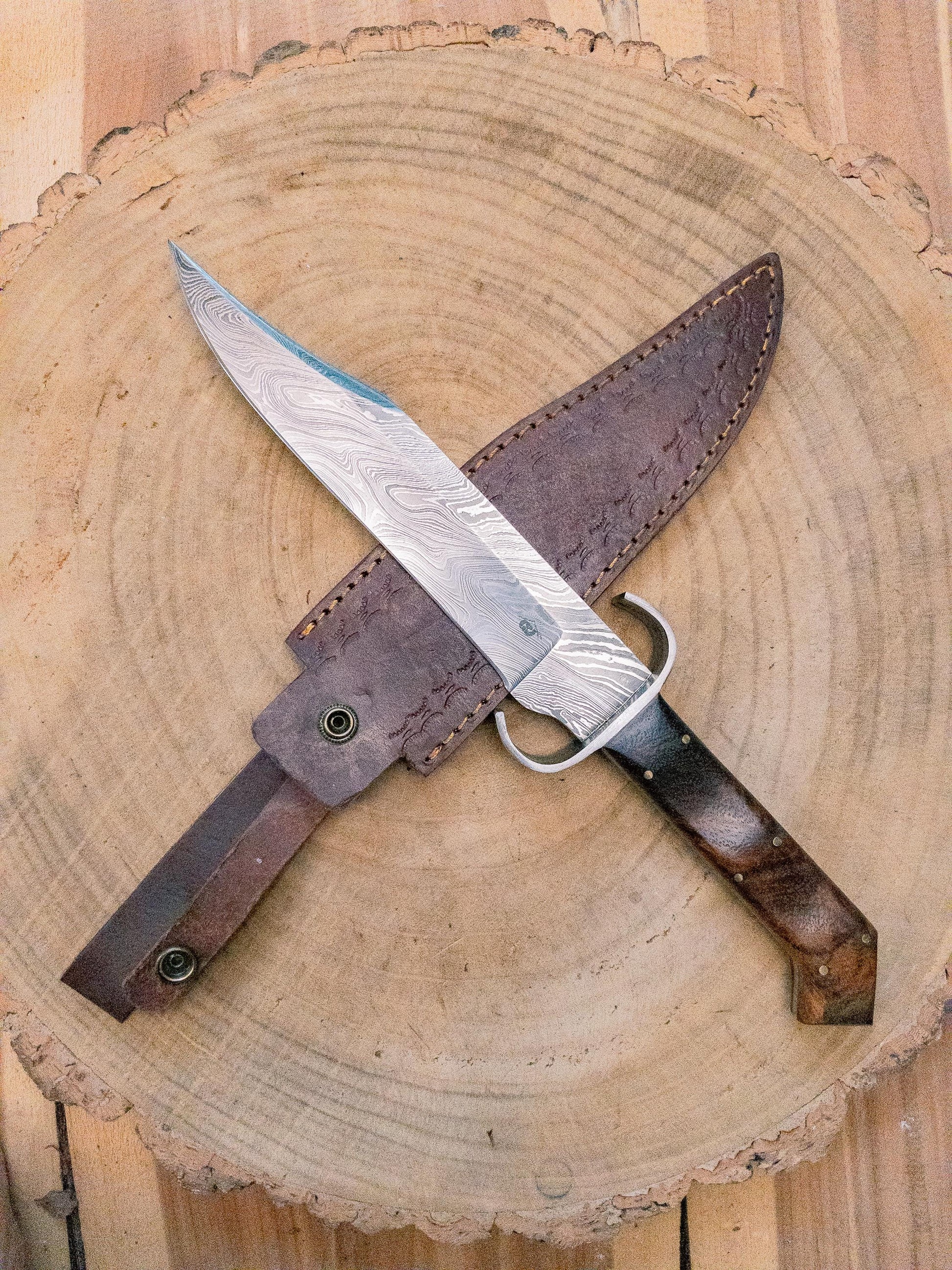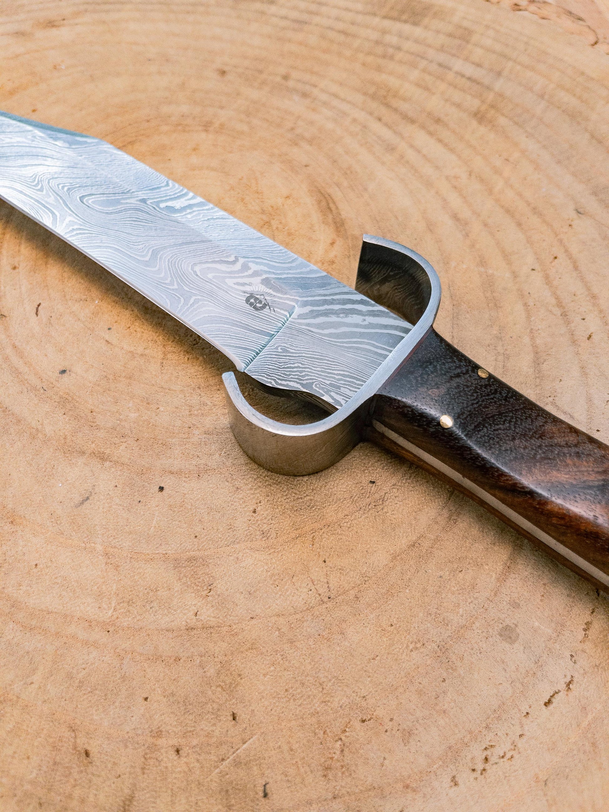 Bowie Knife "The Mini Dueler" Damascus steel, Lightweight, Back-cut, Birdshead Handle