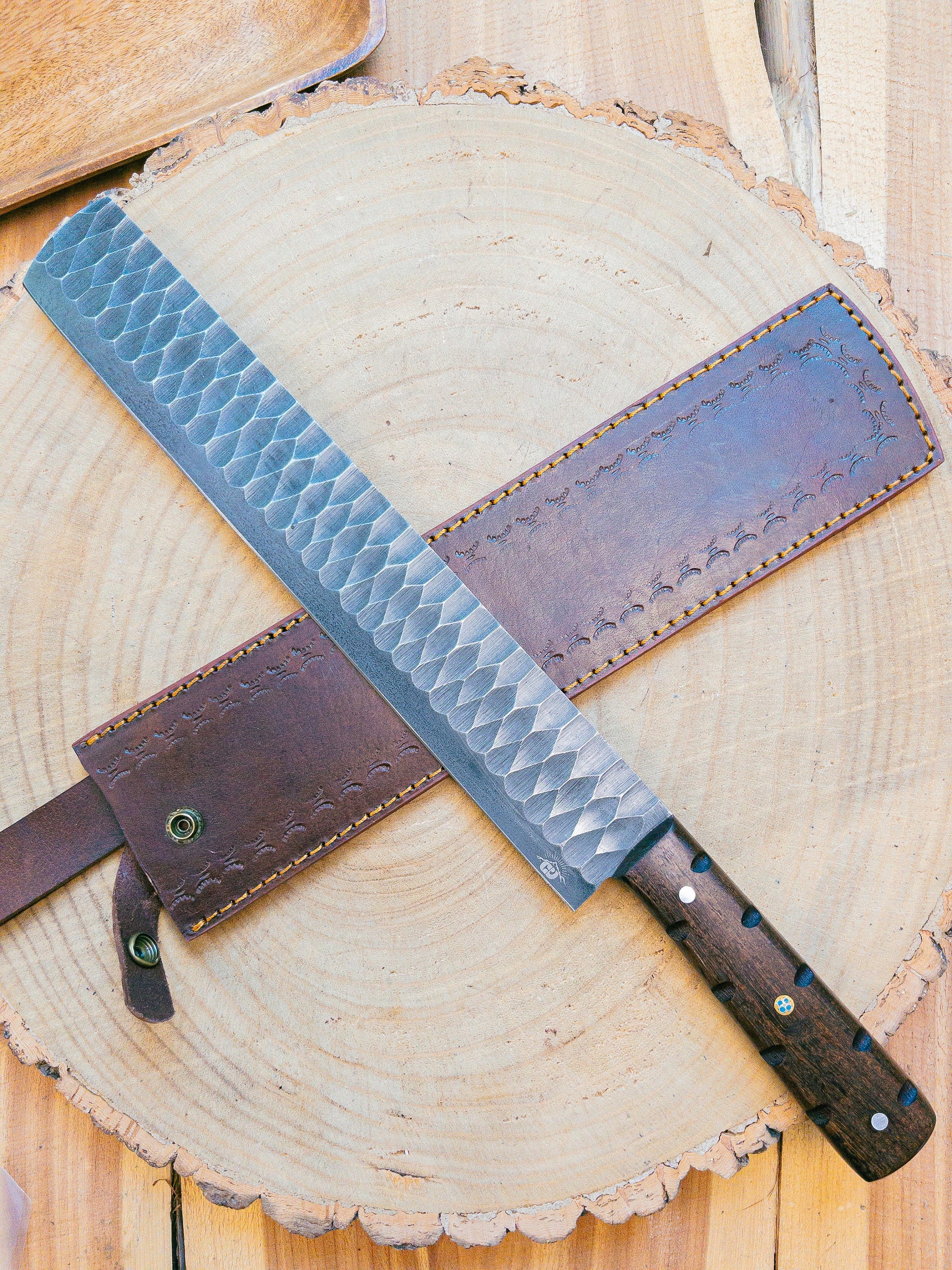 Kickoff the grilling and BBQ season right with this 17" version of our popular brisket slicer! Made from 1095 High Carbon Steel with hand file diamond pattern finishing along the blade. Set on Rosewood handle.