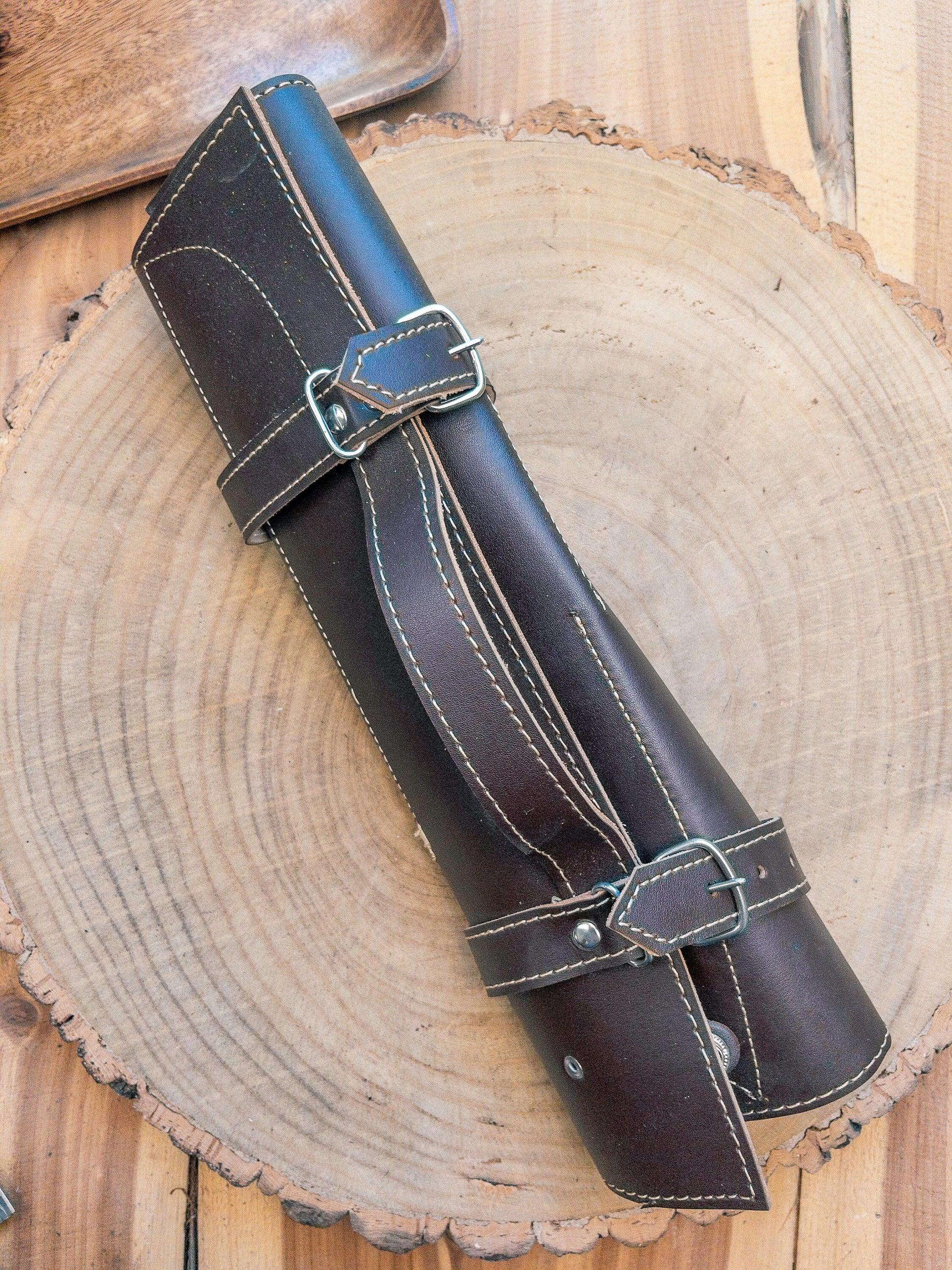 Damascus steel has a high carbon content and is prone to rust when exposure to moisture or acidic residue is left un-tended. Immediately after use, wipe down the blade and thoroughly dry (wash with warm water if necessary, but do not use soapy / dishwater), and apply a coat of vegetable oil, coconut oil, or any lubricated oil/vaseline. Store or display in a dry space. Note that for long term storage, the custom leather sheath should not be used. Use the sheath as you carry or transport the knife, but do not leave in the sheath for extended periods of time.