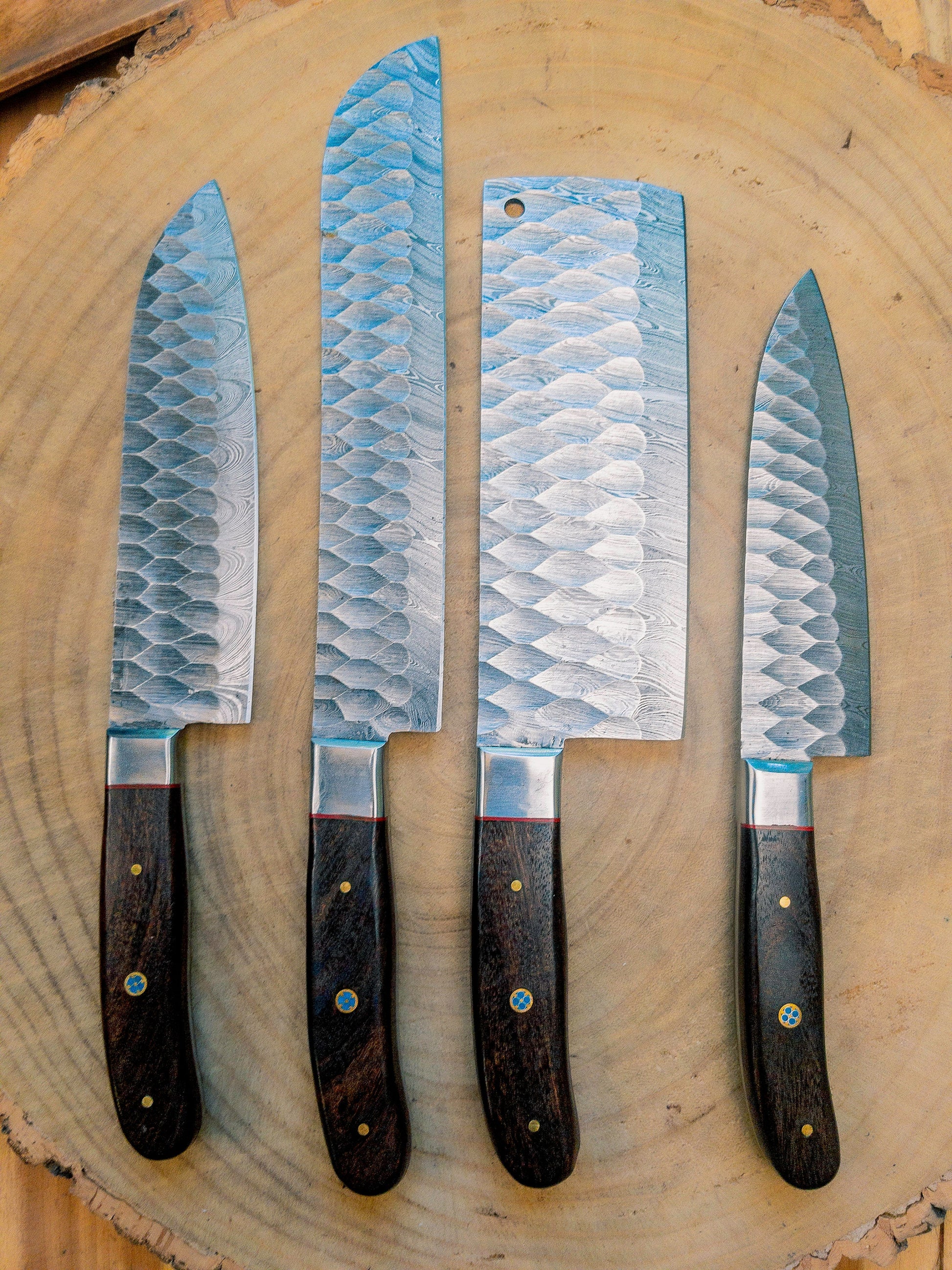 Chef Knife Set - 4 Piece Chef Knife Set - Damascus Steel Hand Forged w/ Chef Roll Carry Case