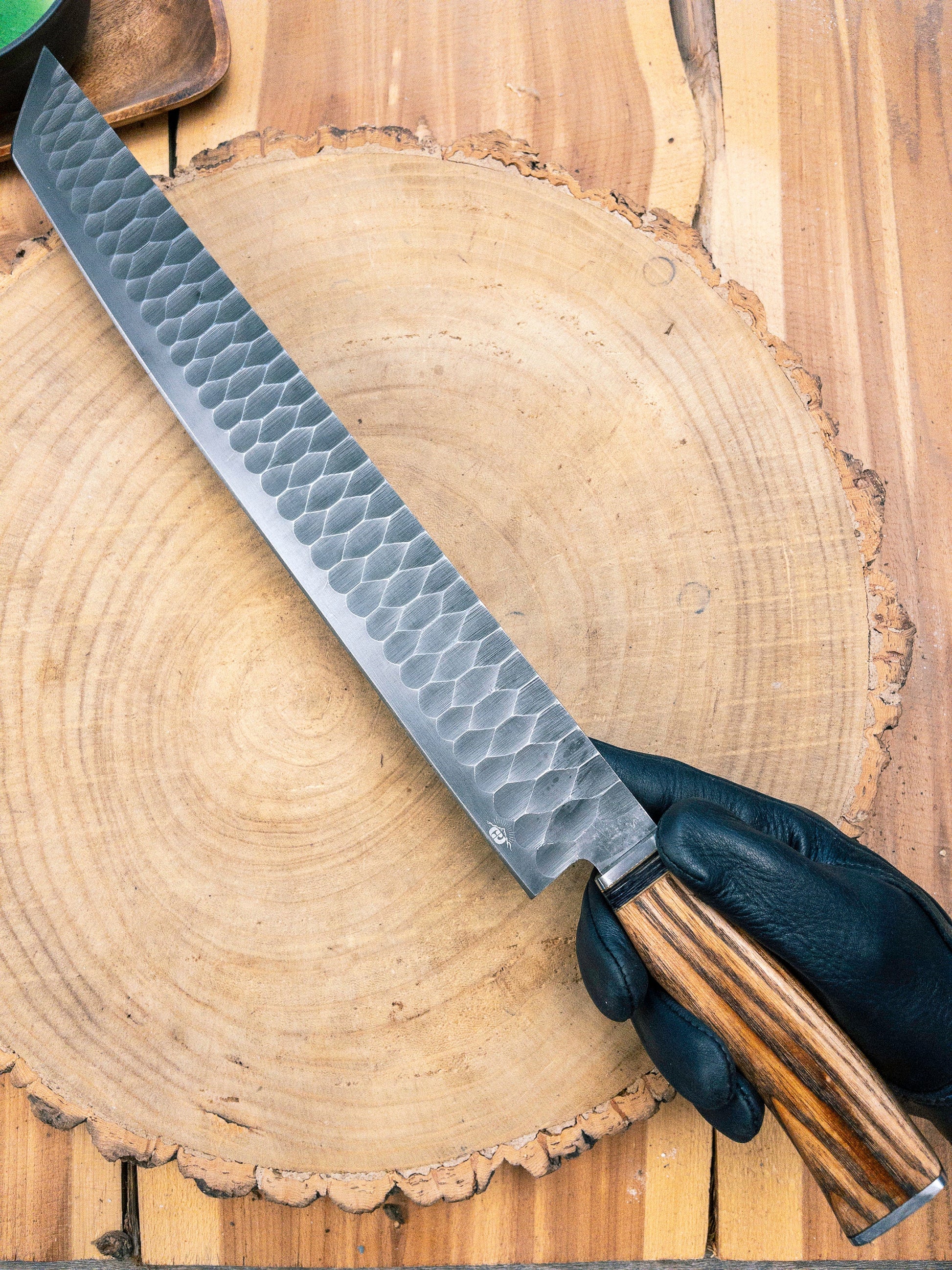 Custom Brisket Slicer - Diamond Pattern Hand Finish Bladework - Ash Handle