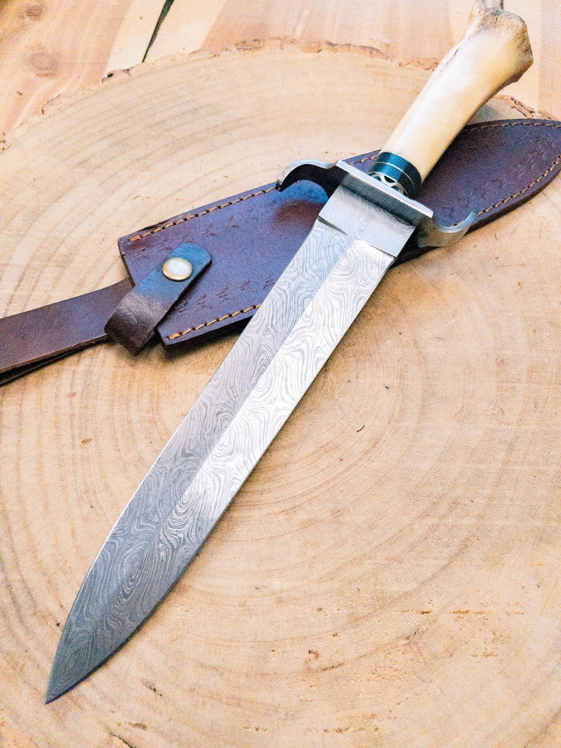 Your custom bowie knife also comes with a custom leather sheath with a belt loop, making it easy to carry and store. Whether you're heading out on a hunting trip or simply need a reliable tool for outdoor activities, this knife is sure to impress.