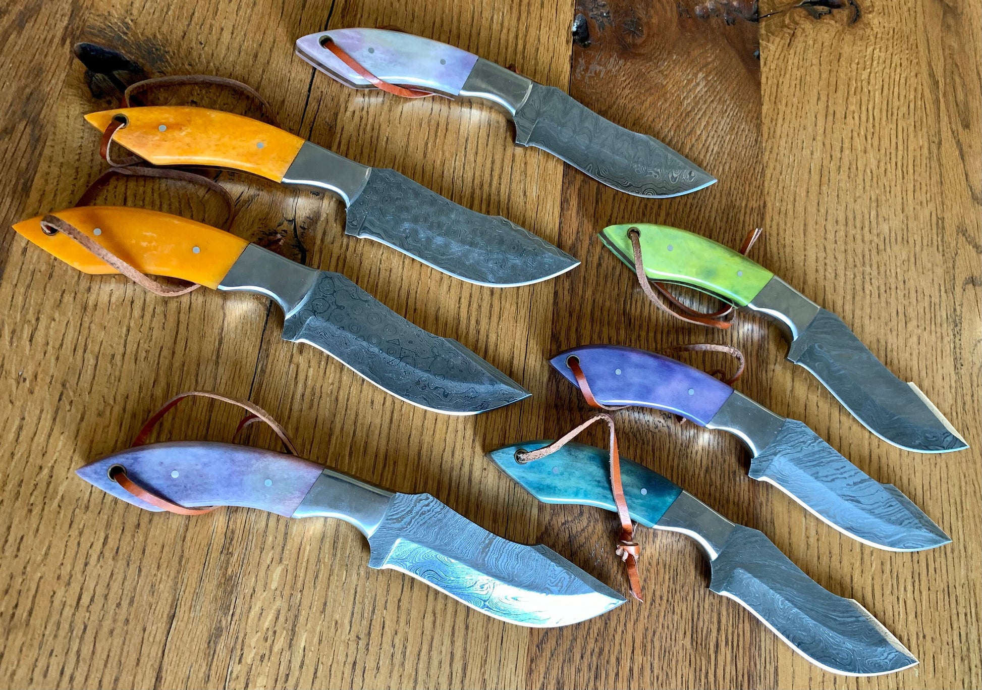 There is a long history of Damascus Steel being used for making knives, swords, daggers, etc. It originated in the Near East; later introduced in the thriving weapon economy of Damascus. Damascus steel craftsmanship was a lost art form for the past few centuries, but has been revived over the past few decades. The "wootz steel" used in the origin years is no longer used, but modern day metalsmiths have mastered the art form of pattern welding, where different types of steel are used to form a billet, typically a combination of 1095 and 15N20 carbon steel. The billet is then folded multiple times creating layers that form the beautiful patterns found in Damascus Steel, hardening in the process. The blades are typically hardened to 57-58 HRC; professionals and experienced home cooks look for kitchen knives with an HRC rating of 55 and above (HRC ratings higher than ~64 are too brittle for effective blade use). The result is a long lasting cutting edge on a beautiful patterned blade. This is a hand crafted process that cannot be mass produced and speaks to the craftsmanship and skill of the artisan.