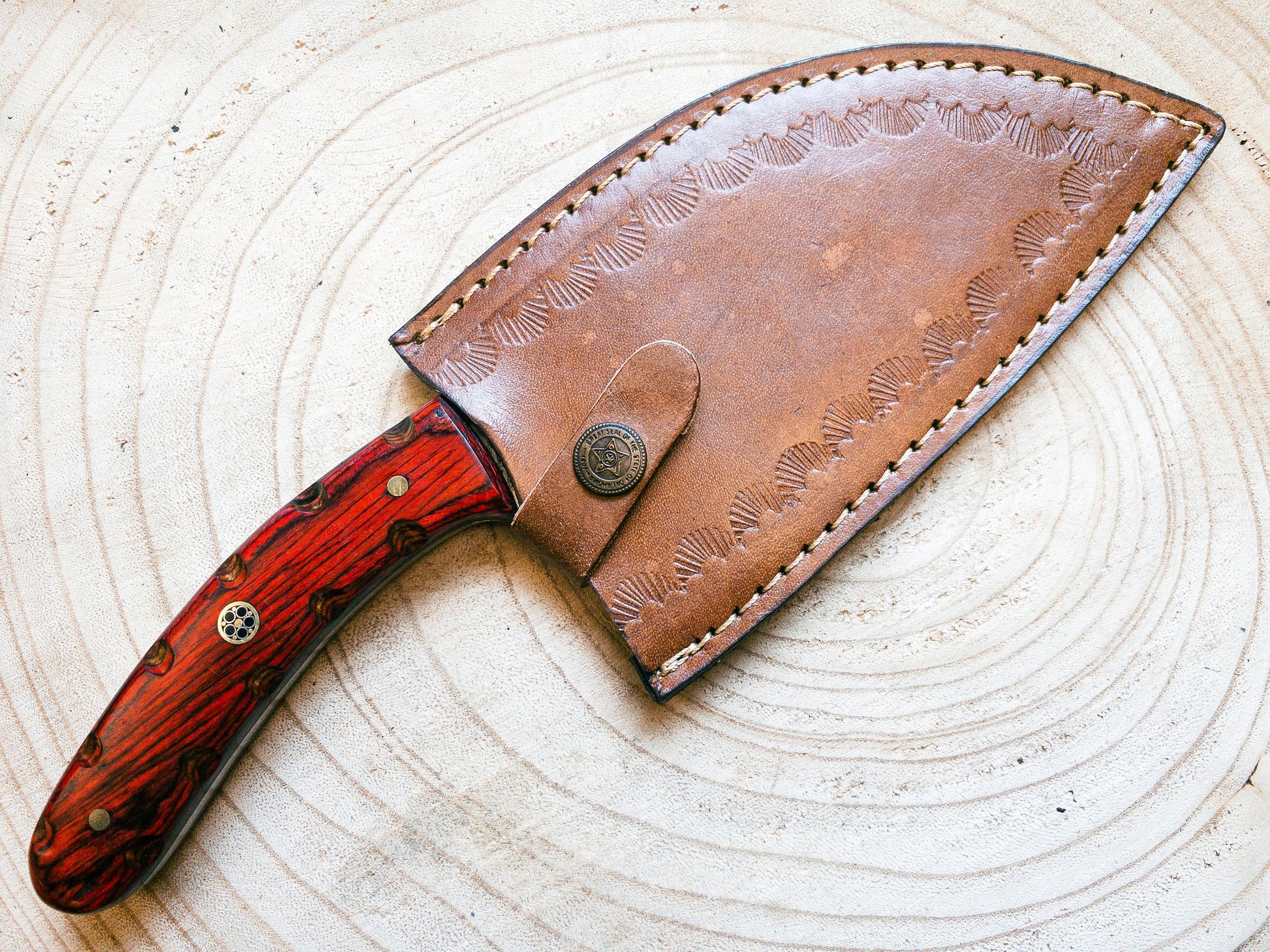 Material: Artisan Hand Crafted Damascus Steel Blade, 1095&15n20 Steel, hardened to 57-58 HRCIncludes: Hand made custom leather sheath