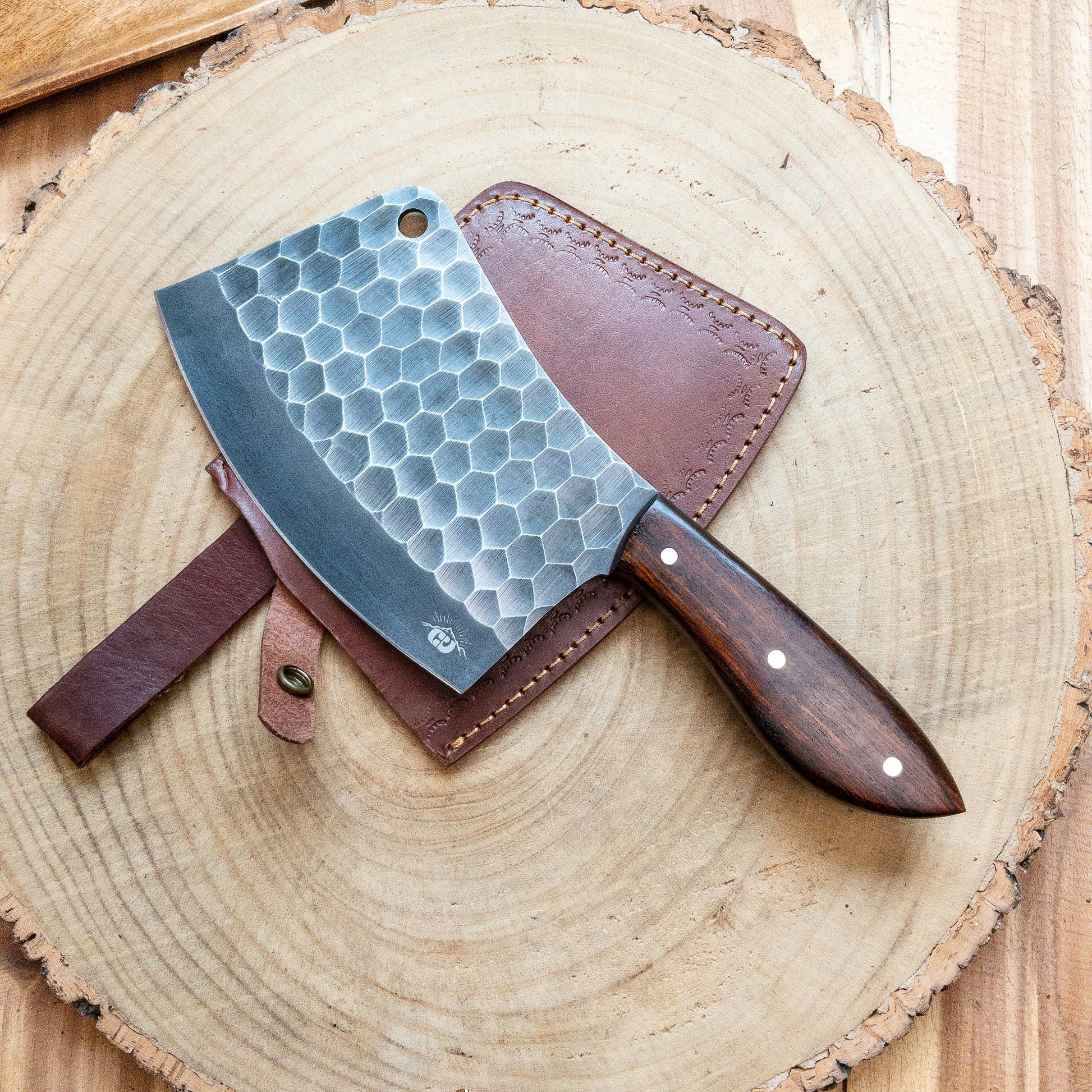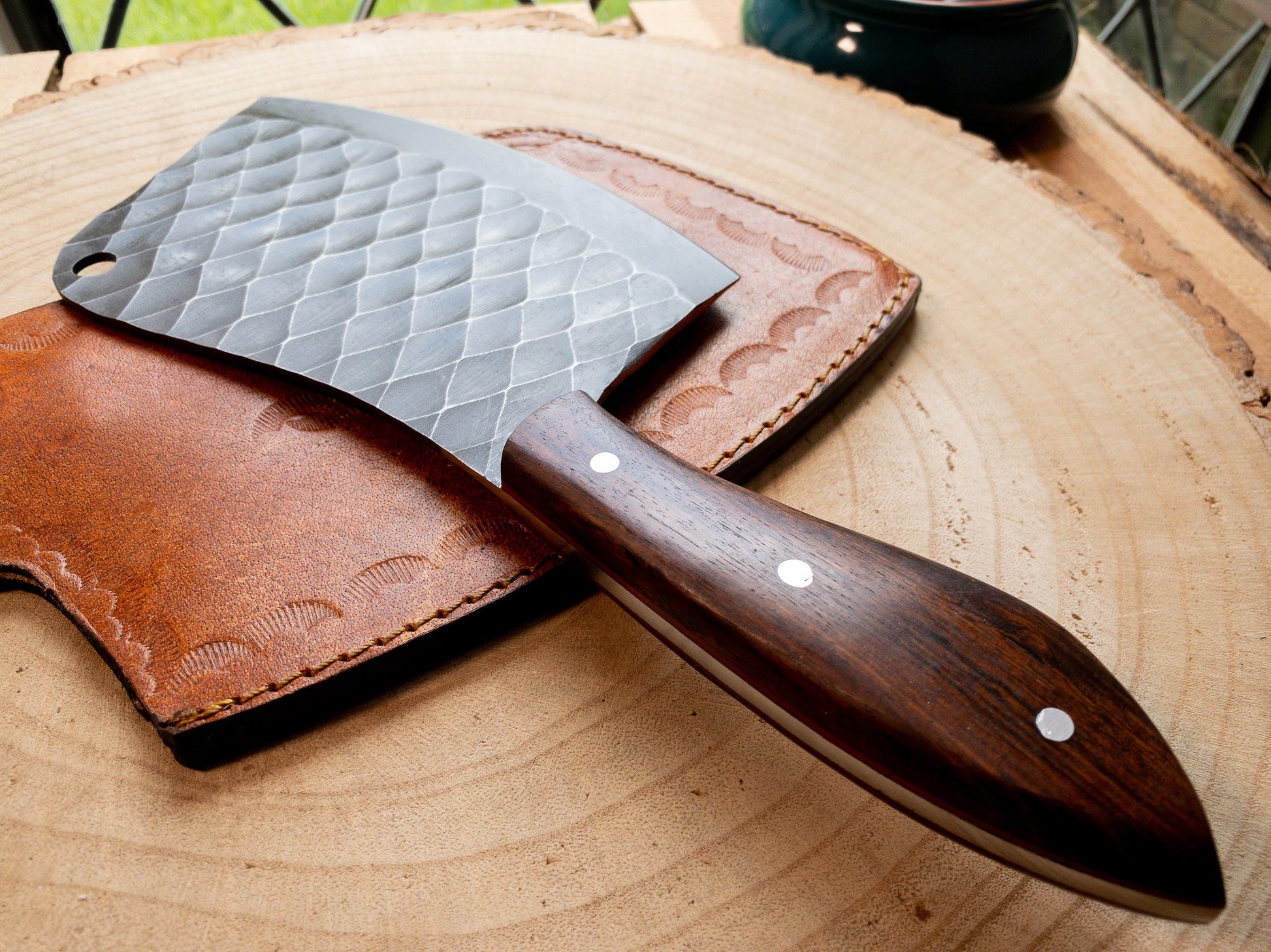Hand Forged Meat Cleaver / Bone Chopper in Knife 1095 High Carbon Steel w/ Rosewood Handle
