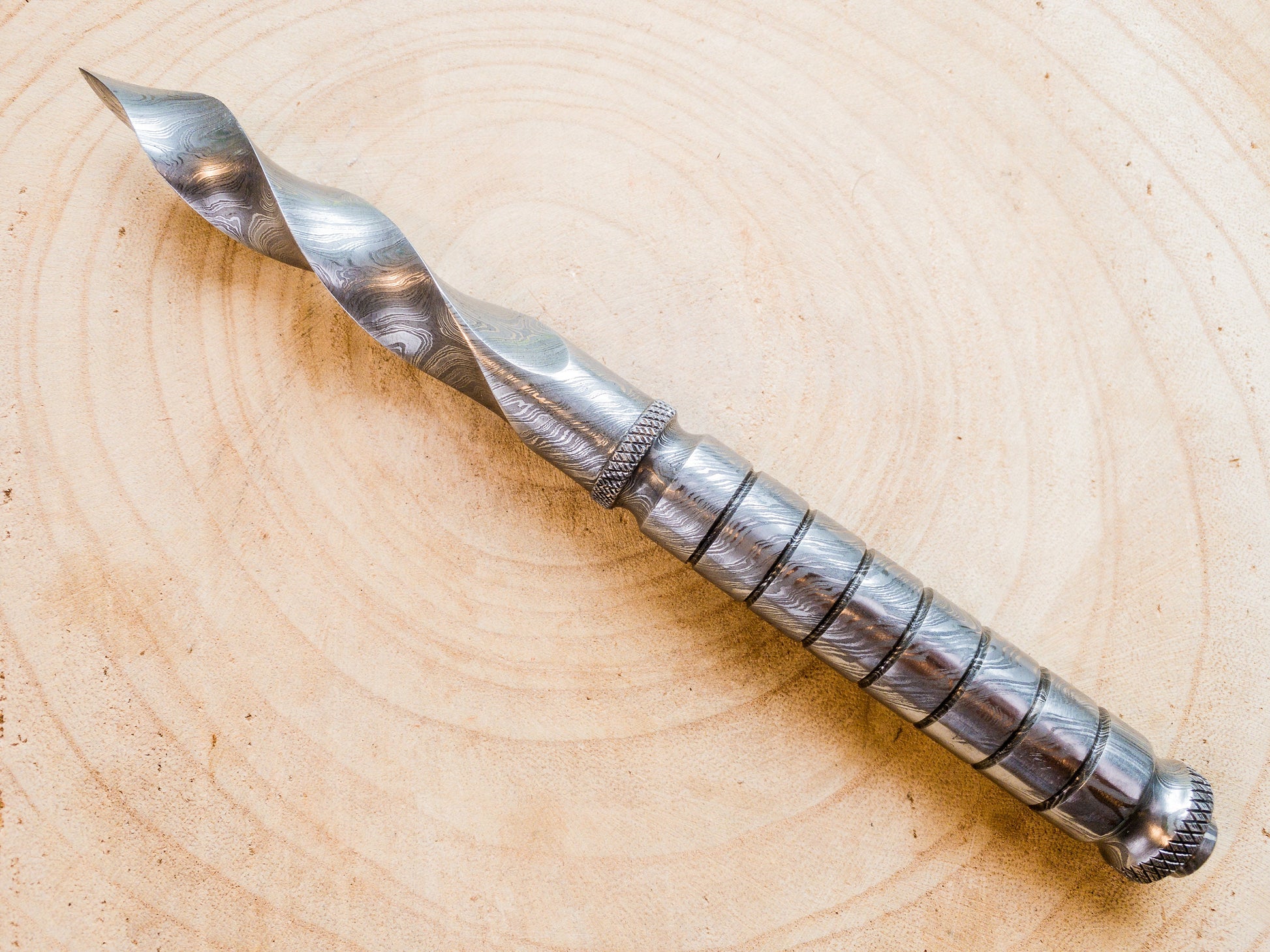 Hand made damascus steel twisted dagger knife.