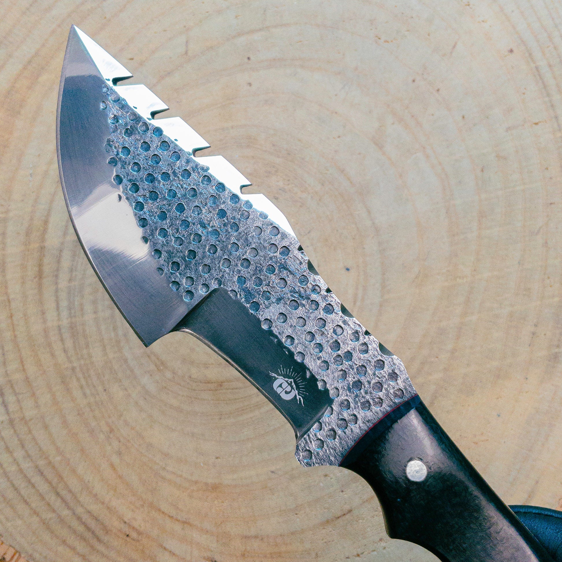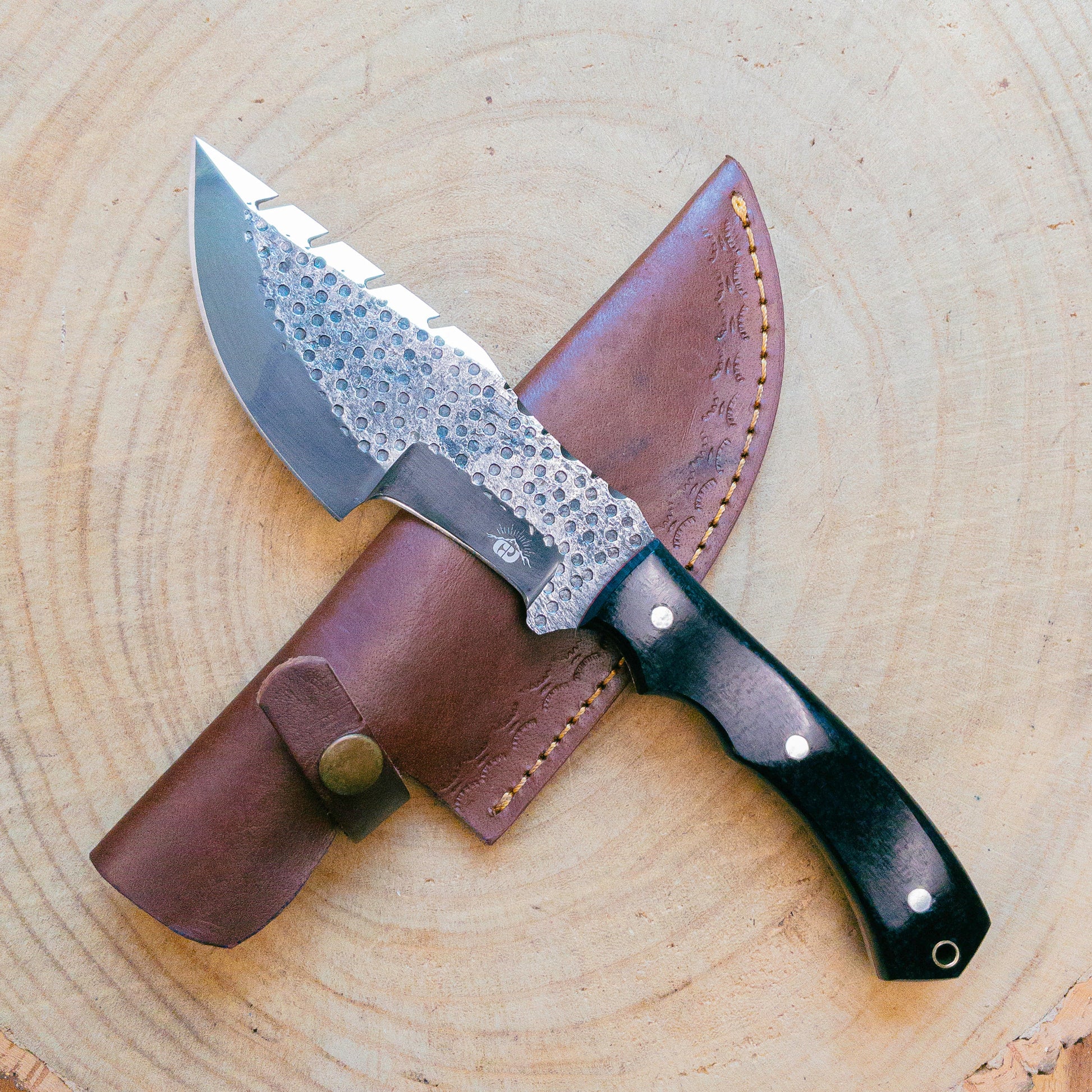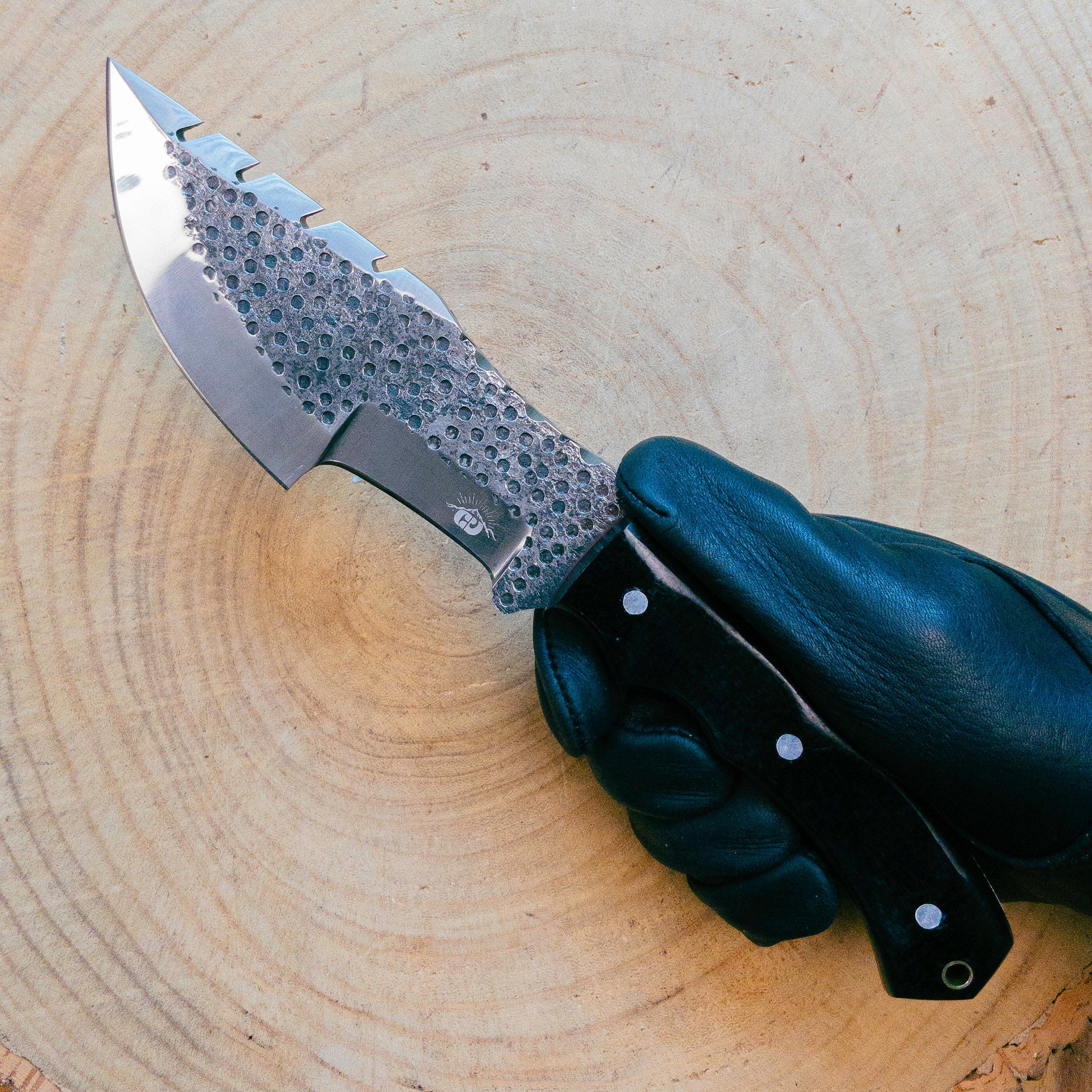 Style: Tracker / Hunting 1095 HC Steel w/ rustic finishing and mirror finish blade, hand made, hand filed ridge finishing.