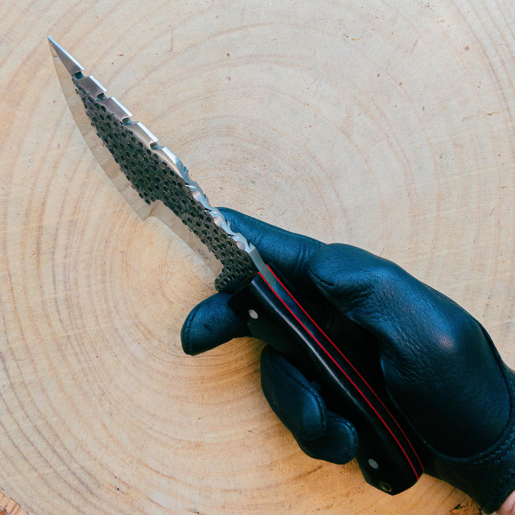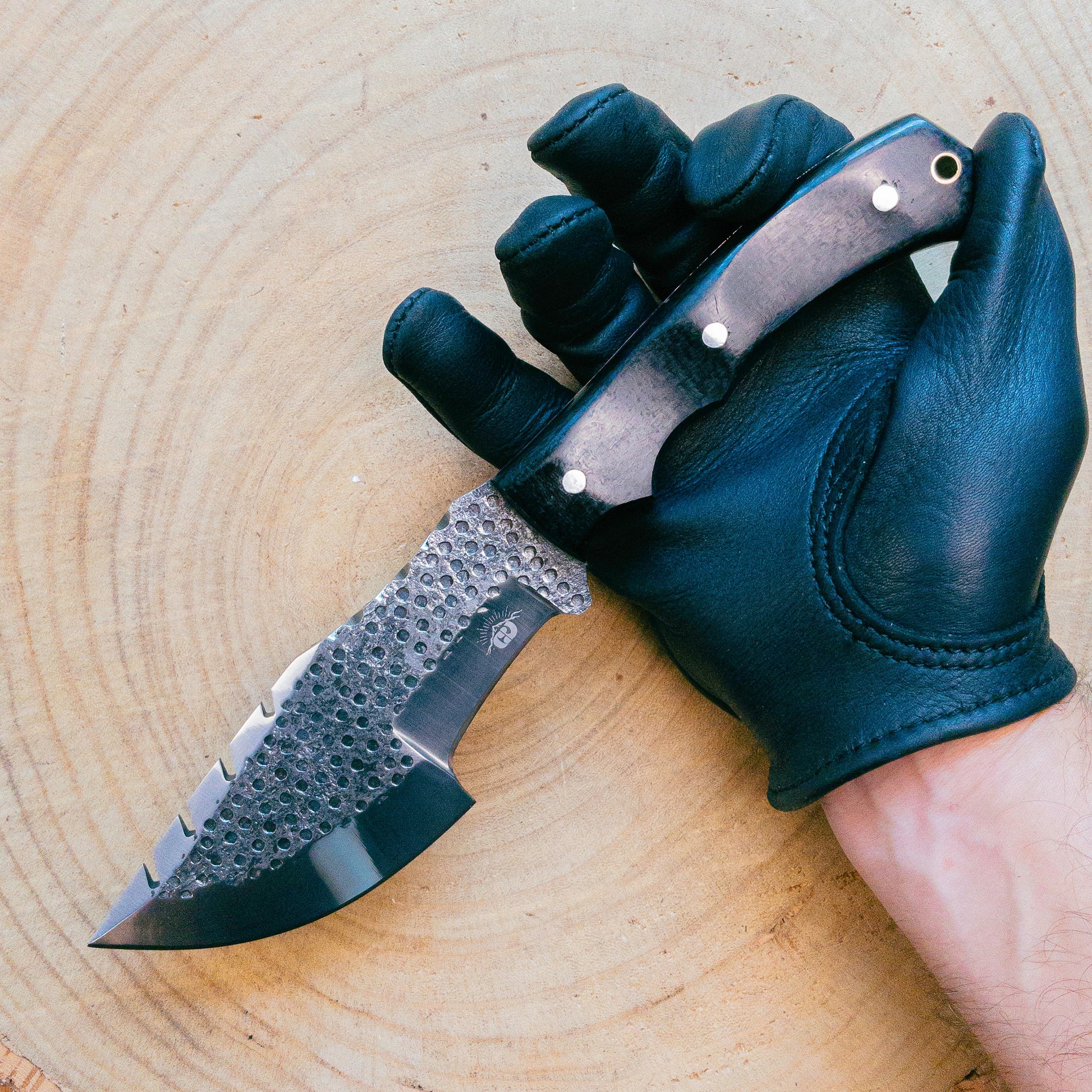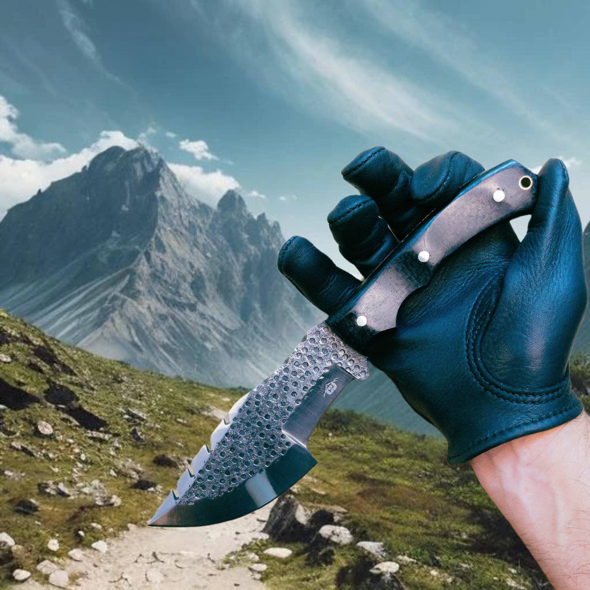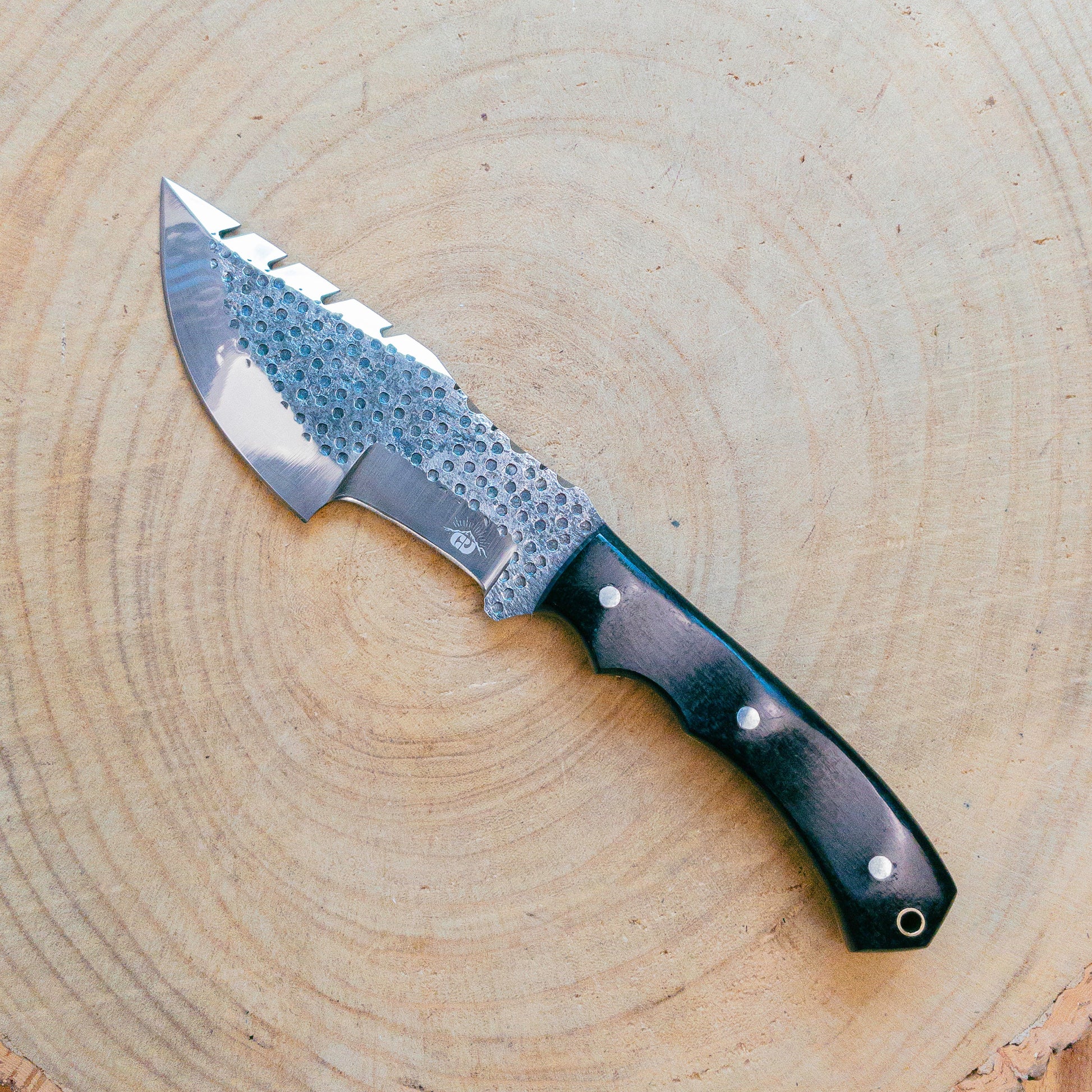 Style: Tracker / Hunting 1095 HC Steel w/ rustic finishing and mirror finish blade, hand made, hand filed ridge finishing.